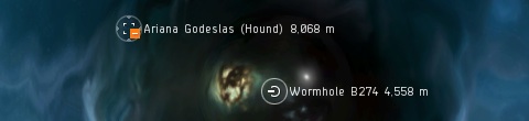 I give chase behind the more agile ship, only in warp wondering why the pilot would scan in a basic frigate when she has the skills to pilot a stealth bomber fit with a covert operations cloaking device. Surely a Cheetah cov-ops boat would be a better choice. Whatever. Now my basic hunt has been made harder, as the Hound will have reached the wormhole before me, and not only can I not tell what range it landed at I can't reliably tell whether it jumped through or not. I think it's best that I assume not.